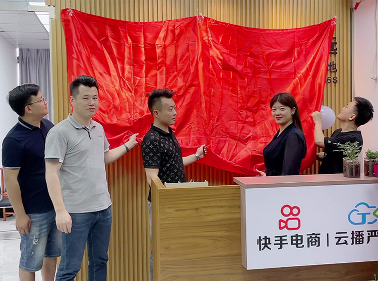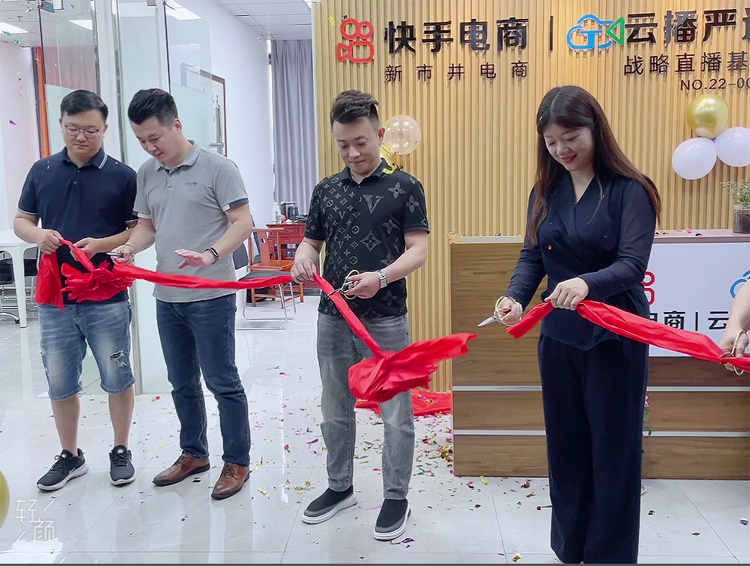北京快手華北渠道經(jīng)理劉雙臣,廣州百盾信息技術有限公司負責人馬同景一同為開業(yè)慶典進行揭幕儀式。