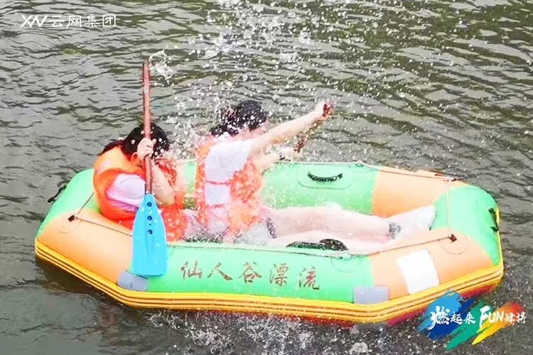 刺激的漂流似乎喚起了大家尋樂(lè)的童心,河道中彼此你追我趕,