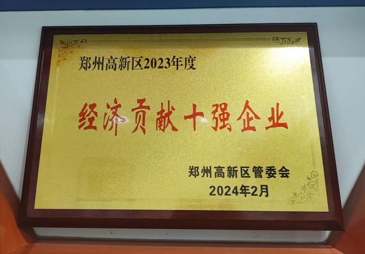 榮獲鄭州高新區(qū)2023年:經(jīng)濟(jì)貢獻(xiàn)十強(qiáng)企業(yè)的獎(jiǎng)項(xiàng)。