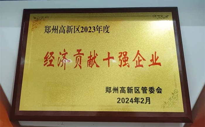 鄭州高新區(qū)2023年:經(jīng)濟(jì)貢獻(xiàn)十強(qiáng)企業(yè)的獎(jiǎng)項(xiàng)。