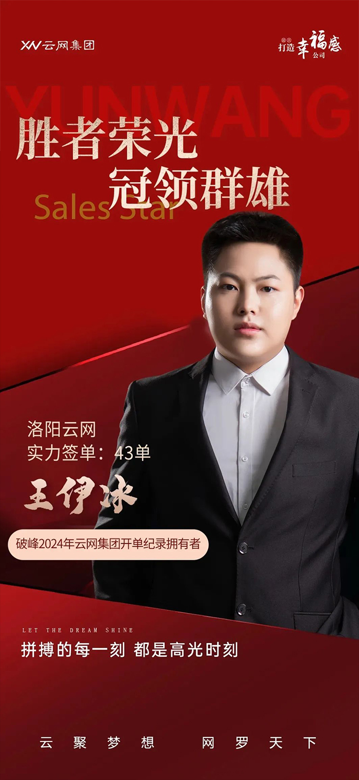 4月,云網(wǎng)集團(tuán)分公司洛陽云網(wǎng)文化傳媒有限公司的銷售經(jīng)理王伊冰憑實(shí)力簽下43單,