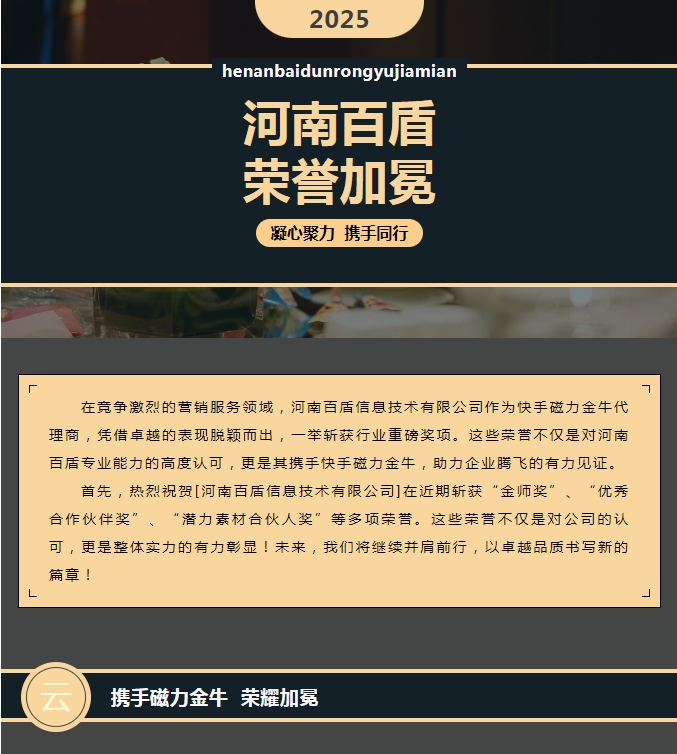 河南百盾信息技術(shù)有限公司榮獲 “快手商城?優(yōu)秀合作伙伴獎”。