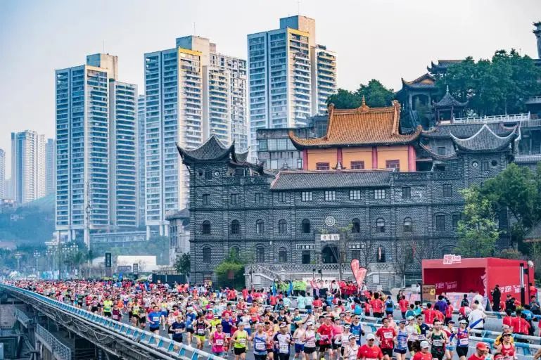 南濱路人山人海,熱鬧非凡,來自世界各地的3萬多名跑者齊聚重慶馬拉松,